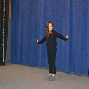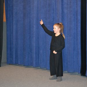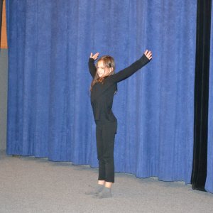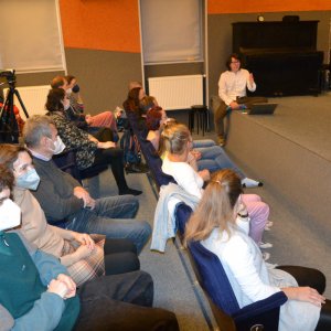 Kromě nejmladších Oliv se v průběhu večera na podiu objevila i jedna z žákyň staršího ročníku. Ta rodičům ukázala, na čem zrovna pracuje při individuálním vzdělávání, kterého se mohou účastnit starší vybraní žáci literárně dramatického oboru, přednostně ti, kteří přemýšlejí o studiu na střední umělecké škole.
