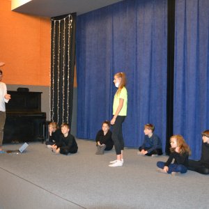 To je důležité, protože hned poté se přechází k tvorbě a zkoušení divadelního představení, což vyžaduje velké soustředění. Představení však už bylo hotové, takže ho děti rodičům rovnou zahrály. Na jevišti se postupně střídali bohové a postupně stvořili svět tak, jak ho nyní známe.